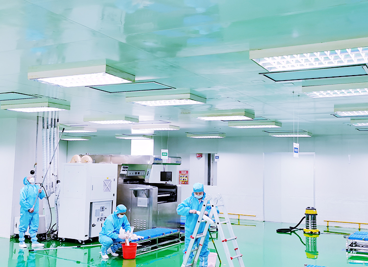 利用无尘净化车间生产线员工休息用餐时间,对生产线、工作台下、坐椅下地面进行清理。定期清洁无尘净化车间的天花板、空调出风口、顶灯隔罩、高架地板下,清洁程序和使用的材料必须按照相关规定,洁净室地面打蜡需严格按计划及清洁程序进行,必须使用防静电蜡,无尘净化车间的清洁工作完成后,需将所有清洁用品收到指定清洁间,与普通工具区别存放,避免交叉污染,并注意摆放整齐。